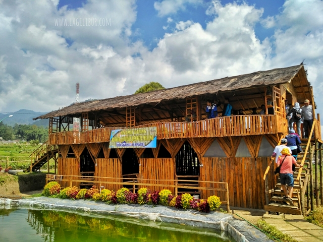 Sesuai namanya Kafe Sawah, saung-saung tempat makan dibuat seolah-olah memang pengunjung sedang duduk dan makan di gubuk petani yang biasanya ada di tengah areal persawahan.